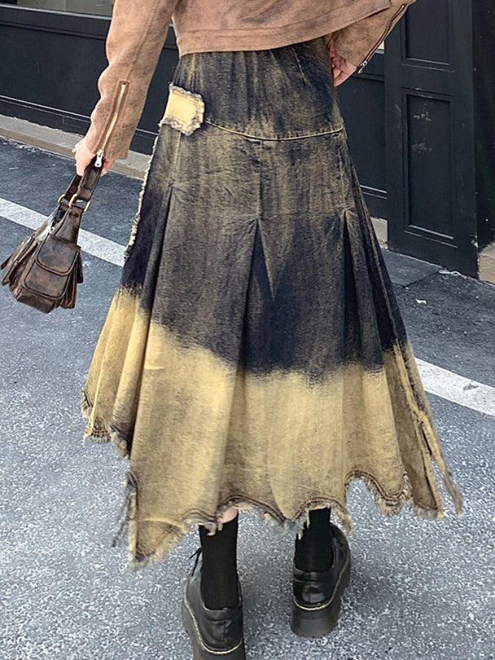 Distressed Cross Raw Trim Irregular Hem A-line Maxi Skirt - AnotherChill