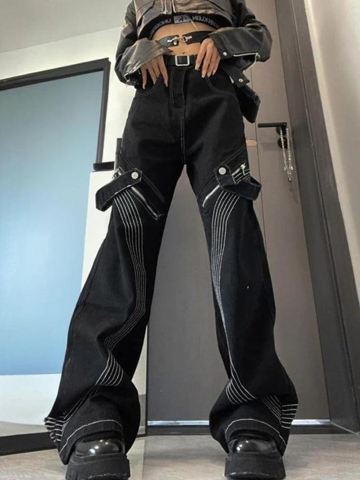 Zipper Pockets: The jeans come with cool zipper pockets that not only provide ample storage space but also enhance the street style aesthetic of the jeans.