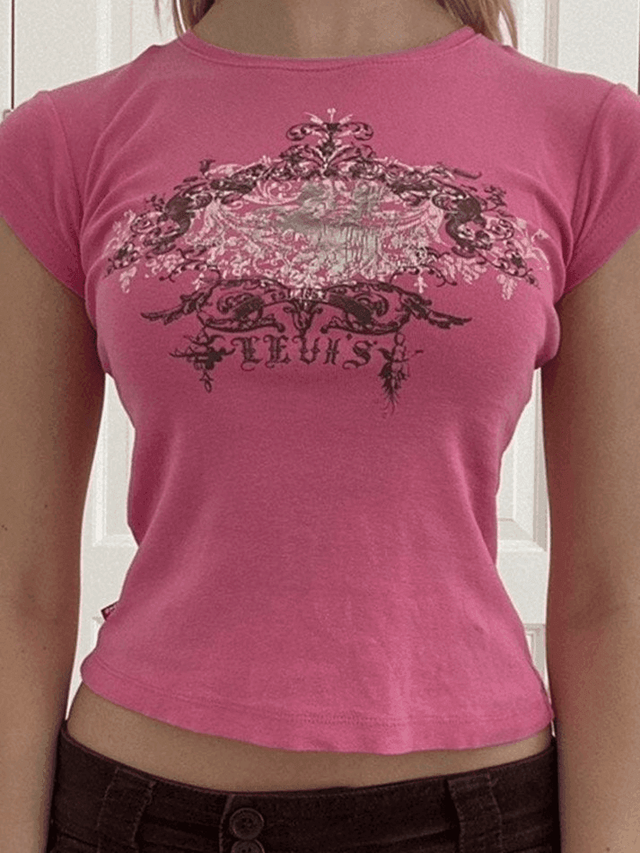 Description: Embrace the retro charm of y2k aesthetics with our Vintage Acanthus Logo-Print Baby Tee. Crafted from a comfortable cotton blend fabric, this tee features a slim fit and a crew neckline. The short tank sleeves and acanthus floral logo pattern add a touch of vintage appeal. Whether you're going out or aiming for a weekend casual look, this tee is perfect for channeling 90s y2k vibes. Get ready to make a stylish statement!